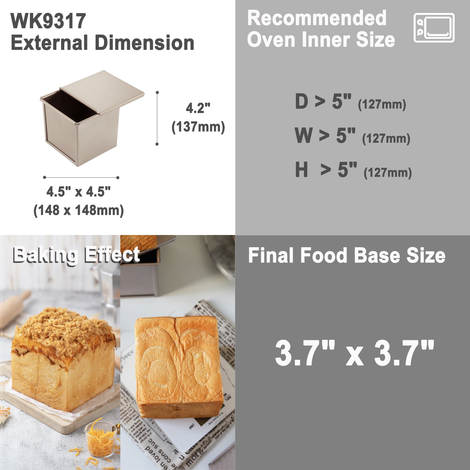 4" x 4" Flat Toast Box (250G Dough Capacity)