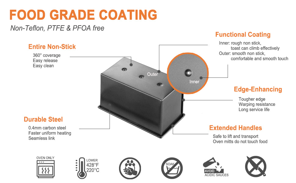 Coating: Food Grade Silicone (Non-Teflon, LEAD/PTFE/PFOA/APEO-Free)